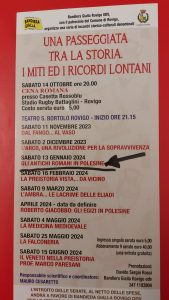 Dopo le Festività Natalizie, riprendono gli appuntamenti culturali organizzati dalla ns/associazione sulla storia della ns/città e del Polesine. Sabato 13 Gennaio 2024 ore 21.15