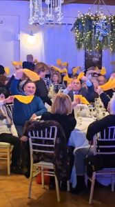 Grande atmosfera Natalizie ed intensa partecipazione di ca. 230 soci e simpatizzanti. Occasione per una breve sintesi sulle attività ludiche/benefiche 2024 della ns/associazione e momento di scambi di auguri Natalizi per presenti e famiglie. Alla fine canti e balli per tutti..