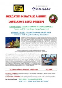 5) Domenica 11 dicembre 2022 in collaborazione con Salmaso Trasporti, viene organizzata la gita natalizia ai Mercatini di Rimini, Longiano ed i suoi presepi.