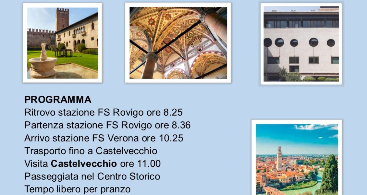 Domenica 1° marzo è in programma A spasso per Verona, una passeggiata tra luoghi d’arte ed architettura. Si tratta di una escursione in treno a Verona, con visita al Museo di Castelvecchio, alla Chiesa di S. Anastasia e a Palazzo Scarpa, con passeggiata nel centro Storico. Ultimi posti disponibili.