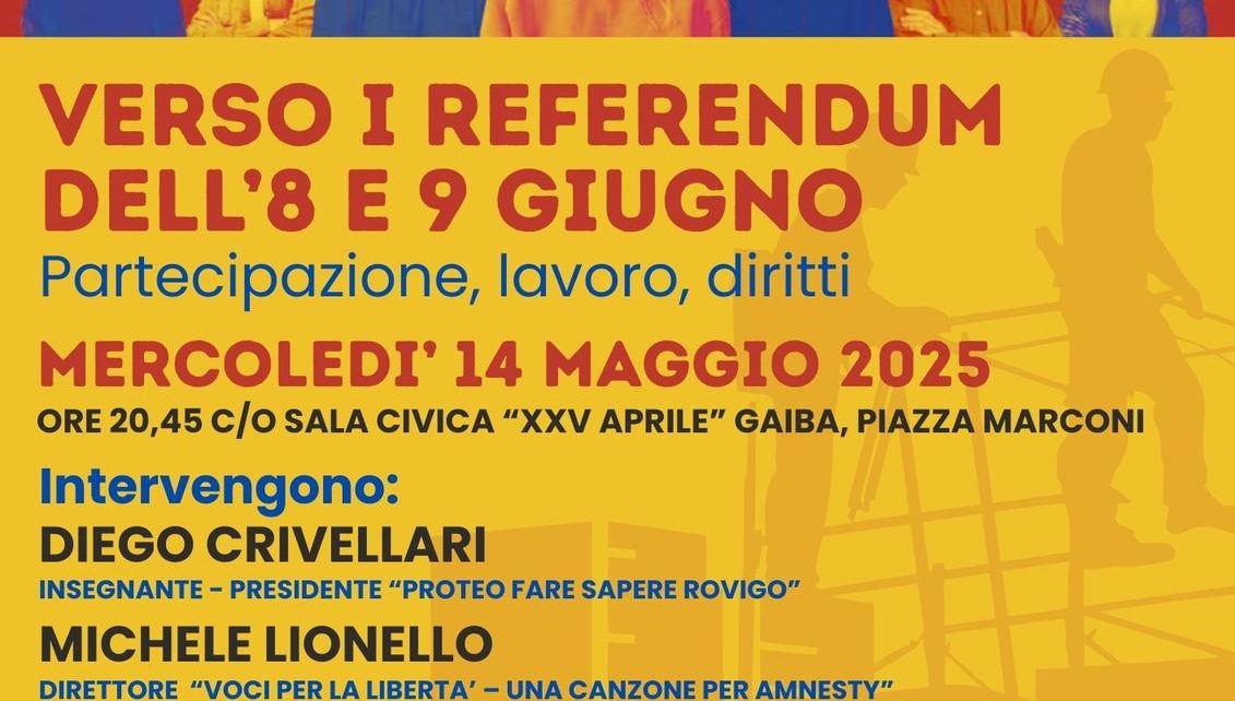 Parteciperanno Diego Crivellari, insegnante, Michele Lionello, direttore di Voci per la libertà, Pieralberto Colombo, segretario generale CGIL Rovigo. Modera Asia Trambaioli, vice sindaco di Gaiba.