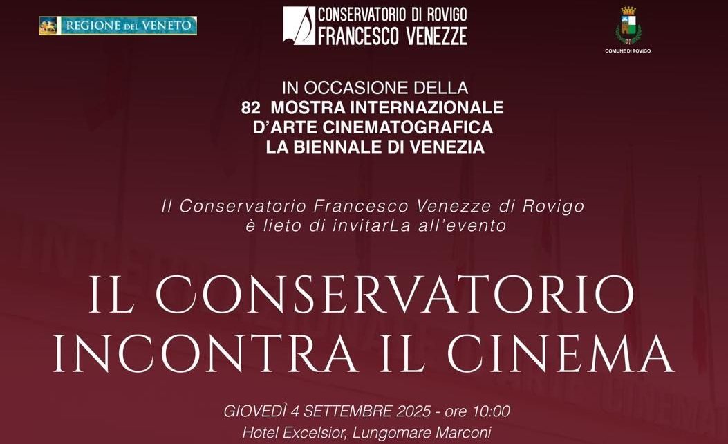 In occasione della 82ª edizione della Mostra Internazionale d’Arte Cinematografica di Venezia, giovedì 4 settembre alle 10, il Conservatorio “Francesco Venezze” di Rovigo celebra, con la presidente Maria Grazia Faganello e il direttore Vincenzo Soravia, un traguardo significativo con l’evento “Il Conservatorio incontra il Cinema”, un omaggio alla stretta e fruttuosa collaborazione tra il mondo […]