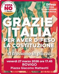 “Il Comitato provinciale di Rovigo ““Società Civile per il NO nel referendum costituzionale” – a cui hanno aderito molte realtà del mondo dell’associazionismo, del sindacato e forze politiche – organizza per venerdì 27 marzo 2026 dalle ore 17.45 alle ore 18.15 in Piazza Matteotti a Rovigo un’iniziativa pubblica (vedi locandina allegata) di ringraziamento alle tante […]