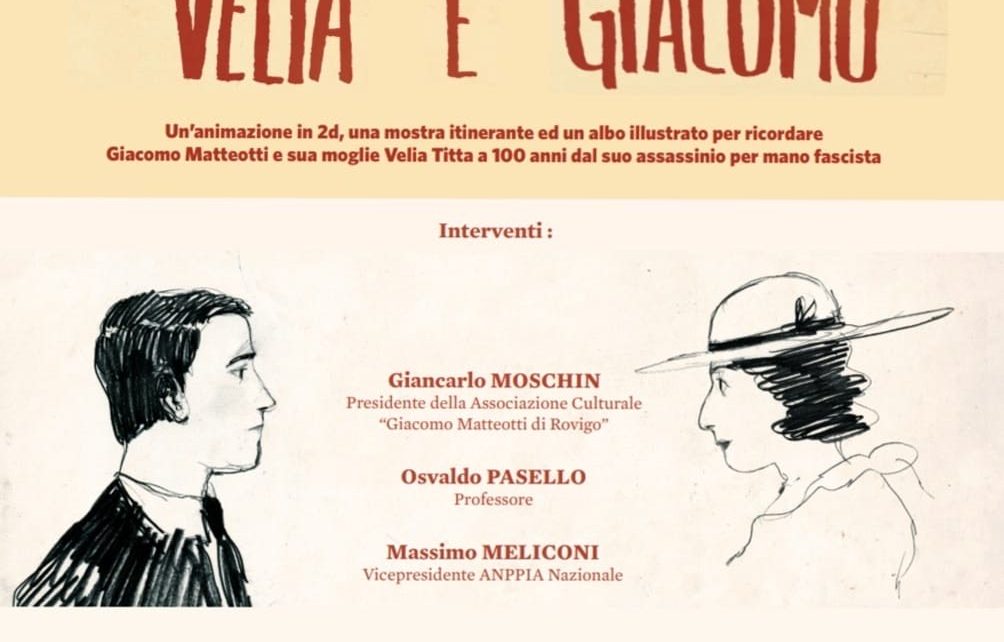 “VELIA E GIACOMO”: a Rovigo un’animazione in 2d, una mostra itinerante ed un albo illustrato per ricordare Giacomo Matteotti e sua moglie Velia Titta a 100 anni dal suo assassinio per mano fascista.